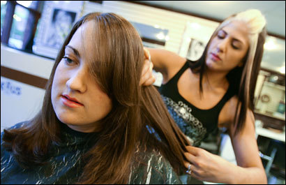 The past two or so times I have gotten my haircut it has been for locks of love and I didn't really get a style. It's been so plain and normal. I haven't really gotten layers or anything fun done to my hair in a while -- because when you donate your hair it is much harder to donate with layers and so on. I am in need of change from my plain jane hair.